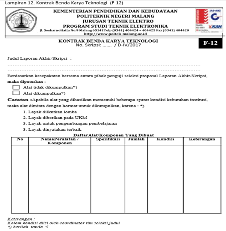 dapat diserahkan ke Program Studi Elektronika atau instansi lain sesuai dengan